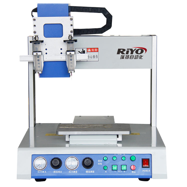 那點(diǎn)膠機(jī)該如何保養(yǎng)呢?首先更換膠種,需清洗管路。此時(shí)先關(guān)閉進(jìn)料閥,打開排料閥,將膠桶剩余膠料排出后,關(guān)閉排料閥打開進(jìn)料閥將清洗溶劑倒入儲膠桶內(nèi),啟動(dòng)機(jī)體,按平時(shí)操作方式將溶劑壓出沖洗。點(diǎn)膠機(jī)在膠水大量使用前,請先小量試用,掌握產(chǎn)品的使用技巧,以免差錯(cuò),當(dāng)測試沒問題時(shí),再用雙液滴膠機(jī)或雙液灌膠機(jī)進(jìn)行大批量的生產(chǎn);抽真空系統(tǒng)對膠水進(jìn)行抽真空除泡處理,以排除攪拌過程中產(chǎn)生的氣泡,或靜置10-20分鐘再使用,以使混合時(shí)產(chǎn)生的氣泡及時(shí)排除,混合在一起的膠量越多?;旌显谝黄鸬哪z量越多,其反應(yīng)就越快,固化速度也會(huì)越快,所以要根據(jù)實(shí)際生產(chǎn)情況進(jìn)行合理配膠,否則造成膠水的浪費(fèi)。排除意外,提高生產(chǎn)效率。如今液體控制技術(shù)和點(diǎn)膠設(shè)備廣泛地應(yīng)用到現(xiàn)代工業(yè)中的各種生產(chǎn)領(lǐng)域。 機(jī)臺長時(shí)間停用時(shí)應(yīng)當(dāng)拔下電源,這樣不僅能使機(jī)器的壽命延長而且還會(huì)省下來不少的電費(fèi)。