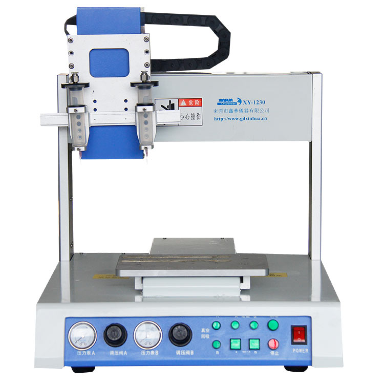 隨著3C電子行業(yè)飛速發(fā)展,電子制造行業(yè)對產(chǎn)品工藝要求的不斷提升,作為其重要的組成分自動(dòng)點(diǎn)膠機(jī)逐漸成為工藝主打設(shè)備它的重要性毋庸置疑,不僅給企業(yè)節(jié)省成本,提升產(chǎn)品品質(zhì)及生產(chǎn)效率,最重要的是開始告別傳統(tǒng)人工打膠作業(yè)方式。在工業(yè)生產(chǎn)中,很多地方都需要用到點(diǎn)膠,比如集成電路、半導(dǎo)體封裝、印刷電路板、彩色液晶屏、電子元器件(如繼電器、揚(yáng)聲器)、電子部件、汽車部件等等。傳統(tǒng)的點(diǎn)膠是靠工人手工操作實(shí)現(xiàn)的,手工點(diǎn)膠已經(jīng)遠(yuǎn)遠(yuǎn)不能滿足工業(yè)上的要求。手工點(diǎn)膠具有操作復(fù)雜、速度慢、精確度低、容易出錯(cuò),而且無法進(jìn)行復(fù)雜圖形的操作,更無法實(shí)現(xiàn)生產(chǎn)自動(dòng)化等缺點(diǎn)。市場上要求一種速度快,效率高,精度高的設(shè)備。因此就出現(xiàn)了全自動(dòng)點(diǎn)膠機(jī)器人。不過在日常使用中,使用久了各種問題也就來了。那么自動(dòng)點(diǎn)膠機(jī)常出現(xiàn)的問題有哪些呢?接下來鑫華小編就為大家分享講解以下點(diǎn)膠過程中遇到的幾種常見問題。