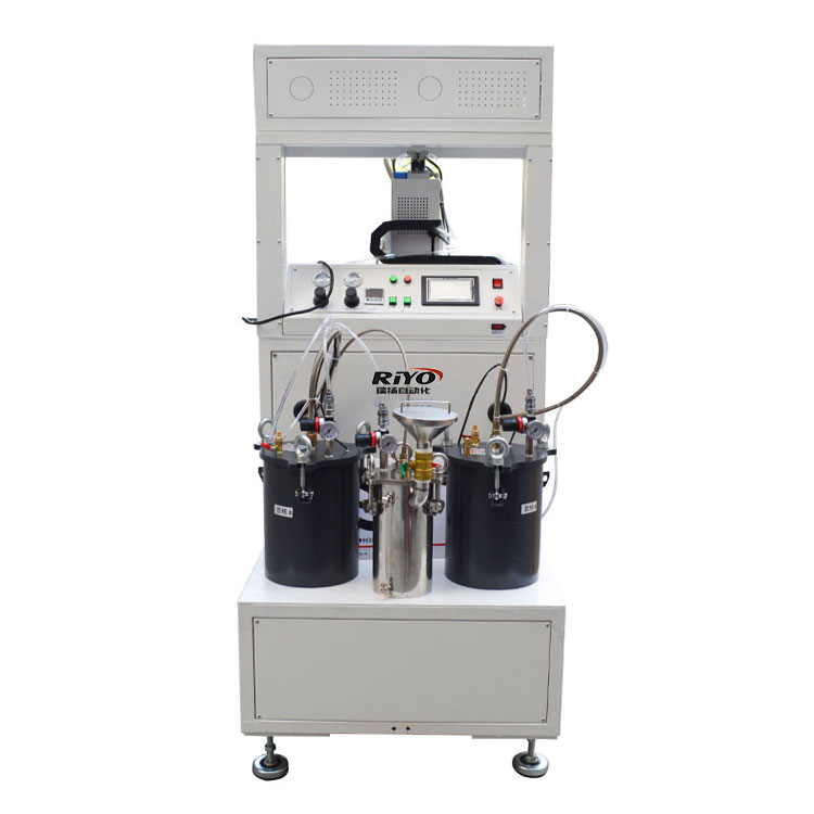 3、配膠部分操作簡(jiǎn)便,您只需把AB膠分別倒進(jìn)相對(duì)應(yīng)的料桶里面,然后在PLC觸摸屏里設(shè)置好灌膠程序,按一鍵啟動(dòng),機(jī)器便可自動(dòng)灌膠,每個(gè)產(chǎn)品灌多少,機(jī)器就自動(dòng)配多少,有效節(jié)約膠水;