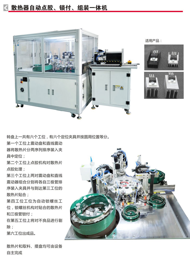 散熱器自動(dòng)點(diǎn)膠鎖付組裝一體機(jī)