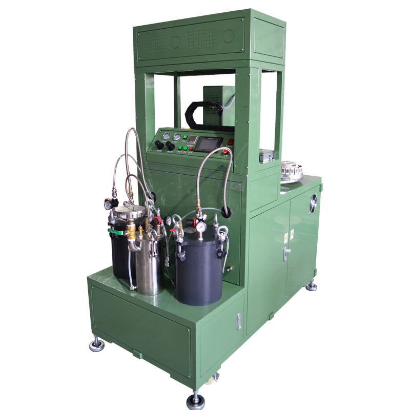 3、配膠部分操作簡便,您只需把AB膠分別倒進(jìn)相對(duì)應(yīng)的料桶里面,然后在PLC觸摸屏里設(shè)置好灌膠程序,按一鍵啟動(dòng),機(jī)器便可自動(dòng)灌膠,每個(gè)產(chǎn)品灌多少,機(jī)器就自動(dòng)配多少,有效節(jié)約膠水;