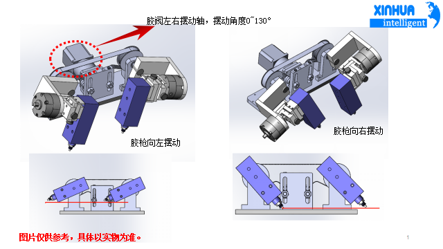 設(shè)備有效運(yùn)動行程:(根據(jù)客戶需求定制)膠頭和前后左右旋轉(zhuǎn)0~90度